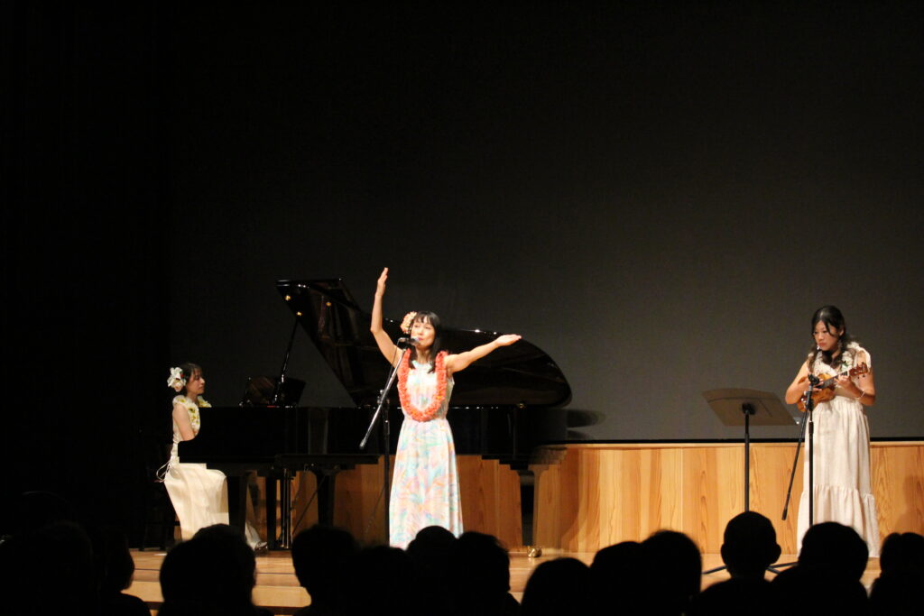 1年で1番多くの指導員の先生方が出演されるコンサート。今年はピアノのソロ・連弾、ウクレレを用いた歌唱。恒例ジャズのコーナー等、一層バラエティーに富んだ内容となり、満席の中、華やかに音楽を奏でました。